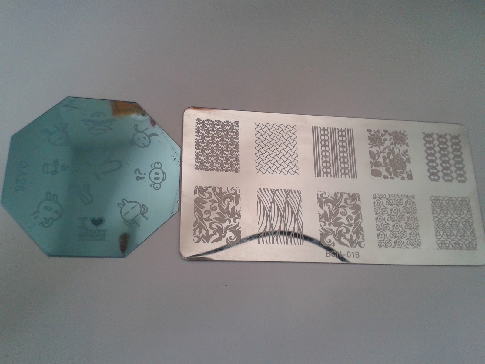 Sé que se ve oscuro, pero en la vida real es un poco más clarito, es un gris de una marca poco feminista (pero quiero ir acabando estos colores) y el 243 de Kiko, la placa de impresión es un juego de placas marca NISU (padre les conoce) que he comprado en los chinos y que paso a enseñaros.